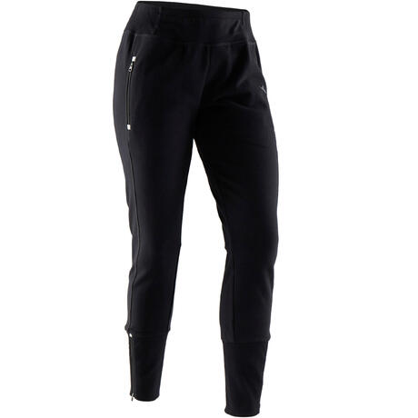 Dámské kalhoty 500 Heavy se zipy na cvičení černé