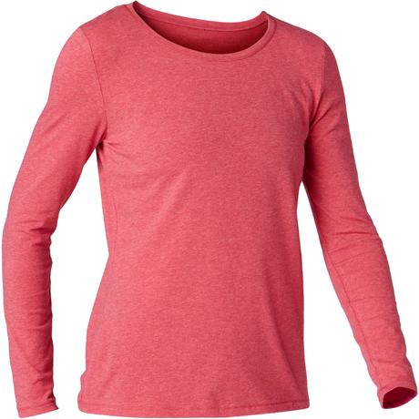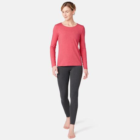 Dámské tričko 100 s dlouhým rukávem na cvičení melírované tmavě růžové