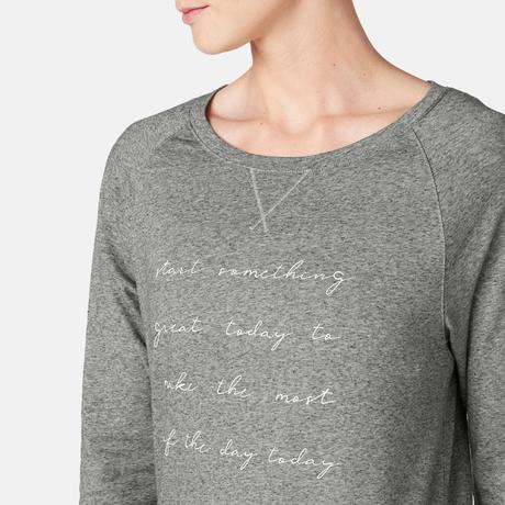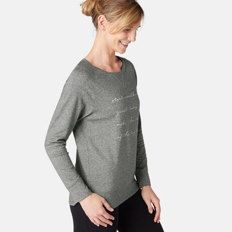 Dámské tričko 500 na pilates s dlouhým rukávem šedé s potiskem