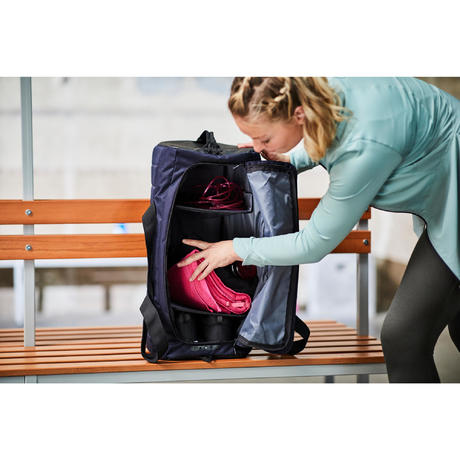 Sportovní taška o objemu 40 l je ideální pro sportovce, kteří chodí trénovat před prací, během pracovní doby nebo po práci. Umožňuje přenos oblečení a příslušenství na fitness. Obsahuje spoustu kapes pro snadné a přehledné uložení věcí.
