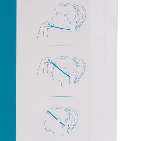 Pro správné nasazení: přetáhnete si ji přes hlavu na krk a přehodíte přes ni vlasy. Následně ji přetáhnete přes obličej nad čelo tak, aby procházela za ušima. Následně si ji nastavíte, tak aby vám bylo její nošení pohodlné. Zkontrolujte, že máte silikonovou stranu směrem dolů.