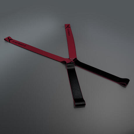 Délka = 600 mm, šířka = 40 mm, síla = 2,1 mm. Odolnost: 10 kg. 2 černé gumy: Délka = 350 mm, šířka = 40 mm, síla = 2,1 mm. Odolnost: 15 kg.